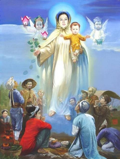 During their prayers, the Virgin Mary is said to have appeared to them, accompanied by two angels. Her appearance was not in the form of traditional Western representations of the Virgin, but rather, she appeared dressed in the attire of a Vietnamese woman of the time. This detail is significant as it symbolizes the deep connection between the Virgin Mary and the suffering Vietnamese Catholic community.