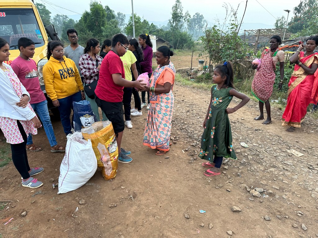 But the highlight of the retreat was a visit to the nearby adivasi village. We carried grains for the families. And the children went in pairs to meet the families. They learned about their lifestyle, how they make a living, how they spend their free time, how they celebrate festivals, their struggles, what brings them joy and much more.