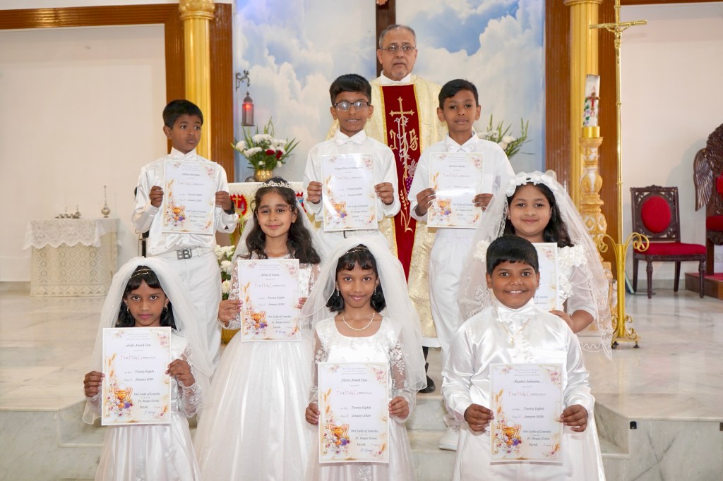 It is with immense joy and gratitude that we share the beautiful memories created during our recent First Holy Communion celebration at our parish on 28 January, 2024 at the 9:30am mass. The air was filled with reverence, excitement, and a profound sense of spiritual connection as 8 of our young members took a significant step in their faith journey.