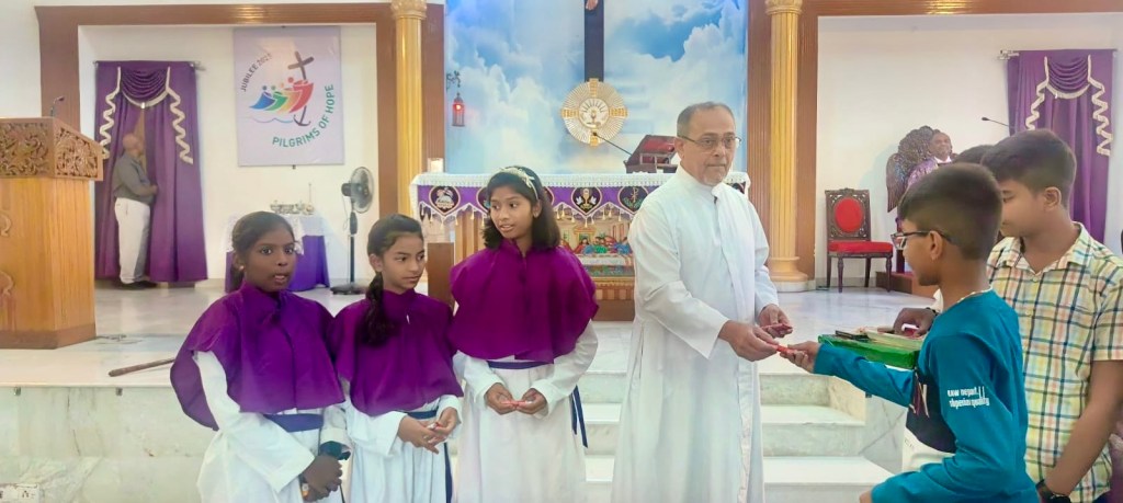 This year under the guidance of Br. Macwin, our altar servers group has been very active. Right through the year, we’ve monitored different aspects of our altar servers, like notes, quiz, puzzles, attendance, regular commitment. At our Sunday mass we felicitated the outstanding altar servers. Presenting our winners