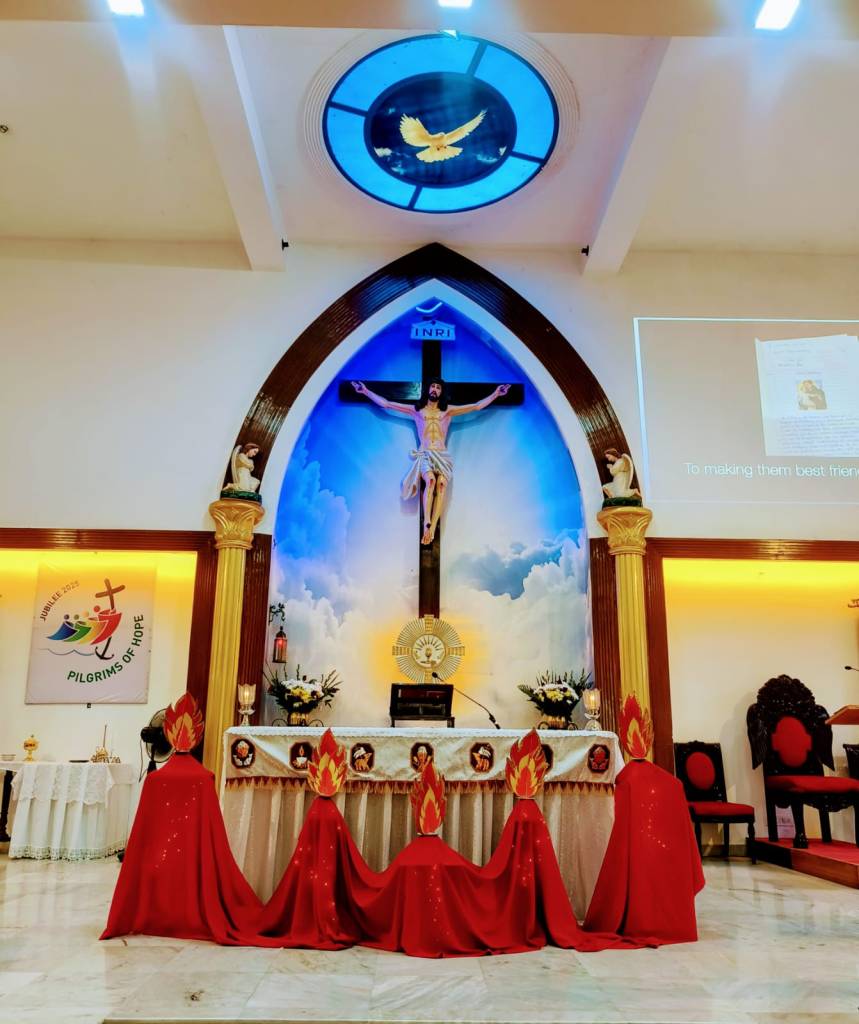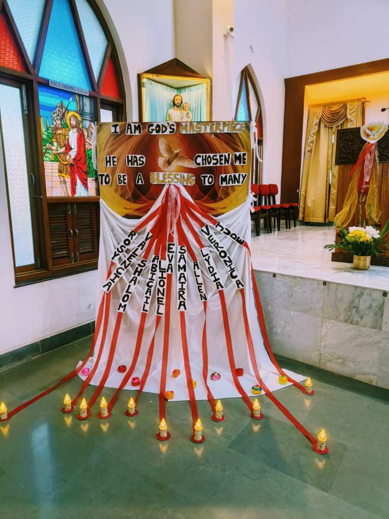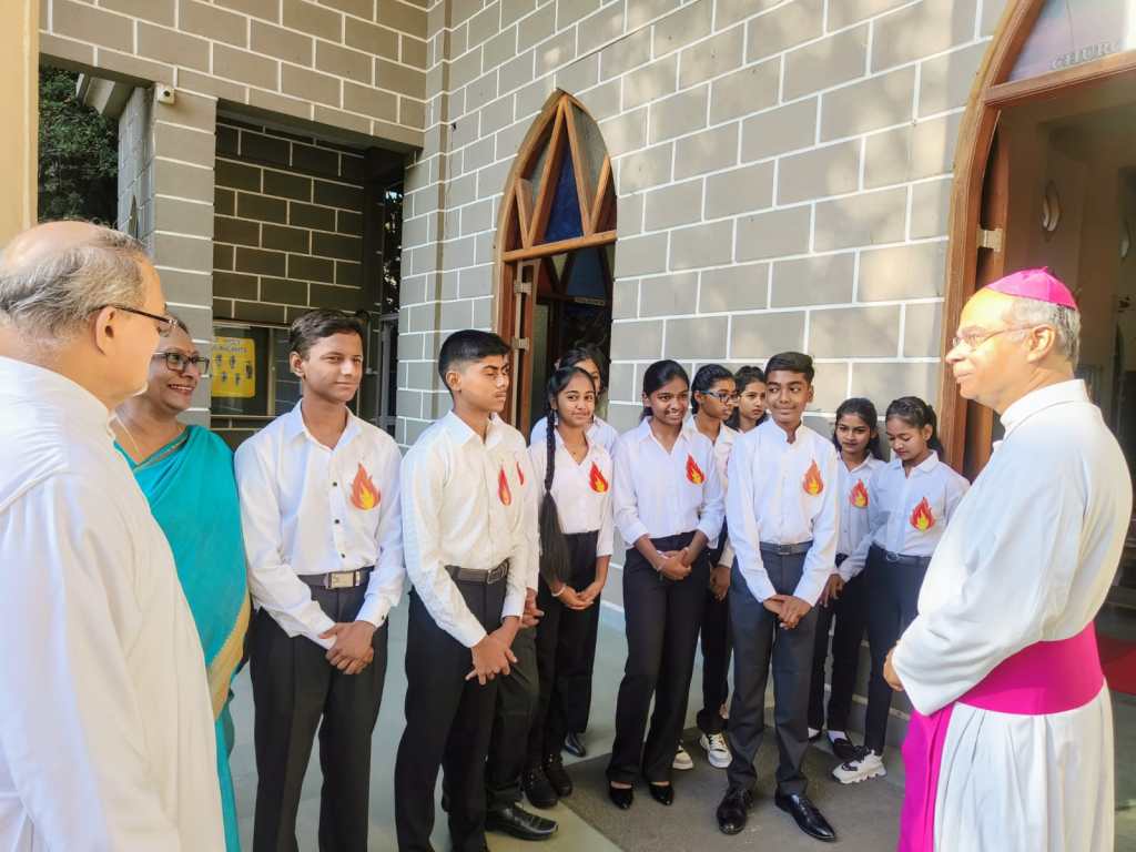 We were honored to welcome Archbishop John Rodrigues, who presided over the ceremony. As a token of our appreciation, we greeted him with a bouquet of flowers. His homily carried a profound message for each of us, emphasizing the importance of strengthening our relationship with God and living out our faith in our daily lives.
