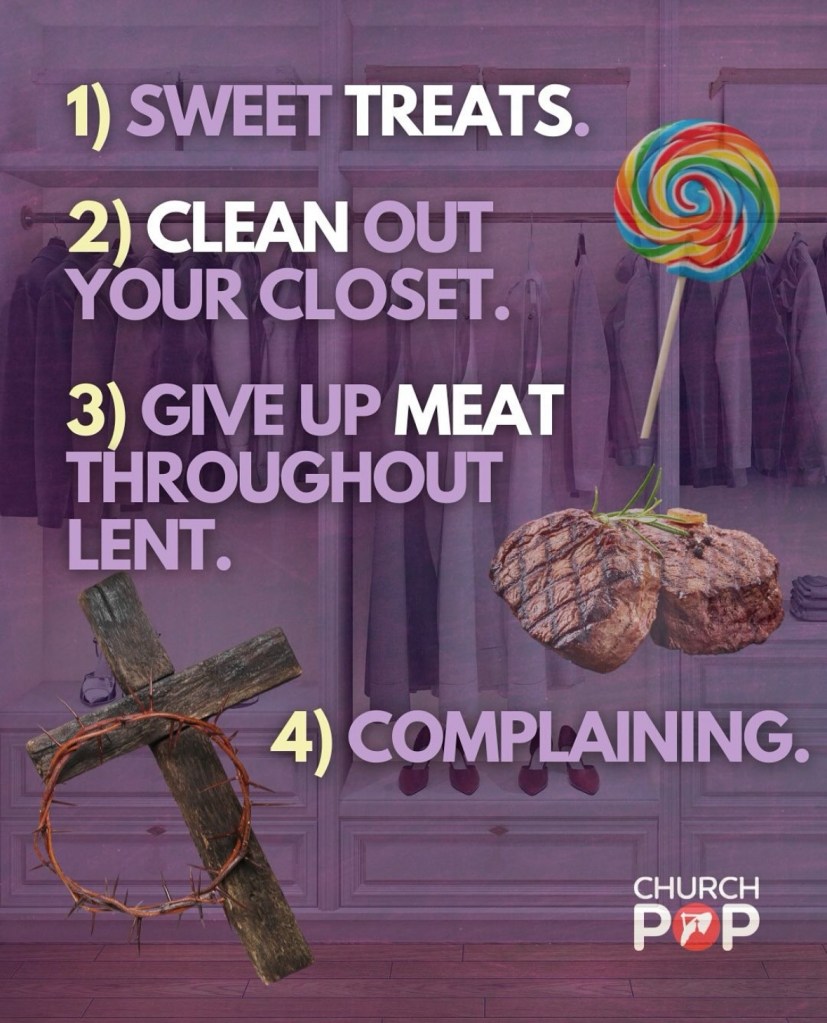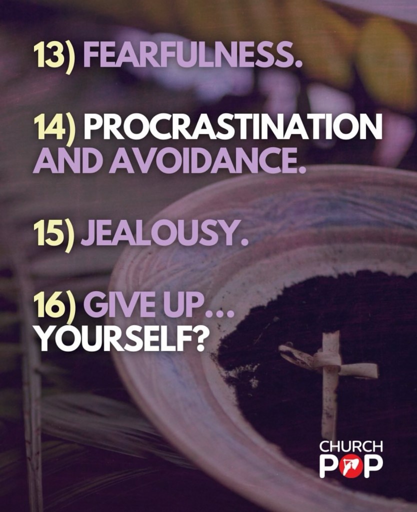 We’re a few days away from Ash Wednesday. In this article, we explore 25 meaningful things to give up this Lent, helping us embrace a more intentional, joyful, and faith-filled life. These have been put together by ChurchPop. If you aren’t following them, then do so right away! Some would not be in our context, but you get an idea of what you can sacrifice!